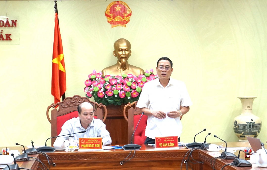 Phó Chủ tịch UBND tỉnh Võ Văn Cảnh phát biểu tại cuộc họp.