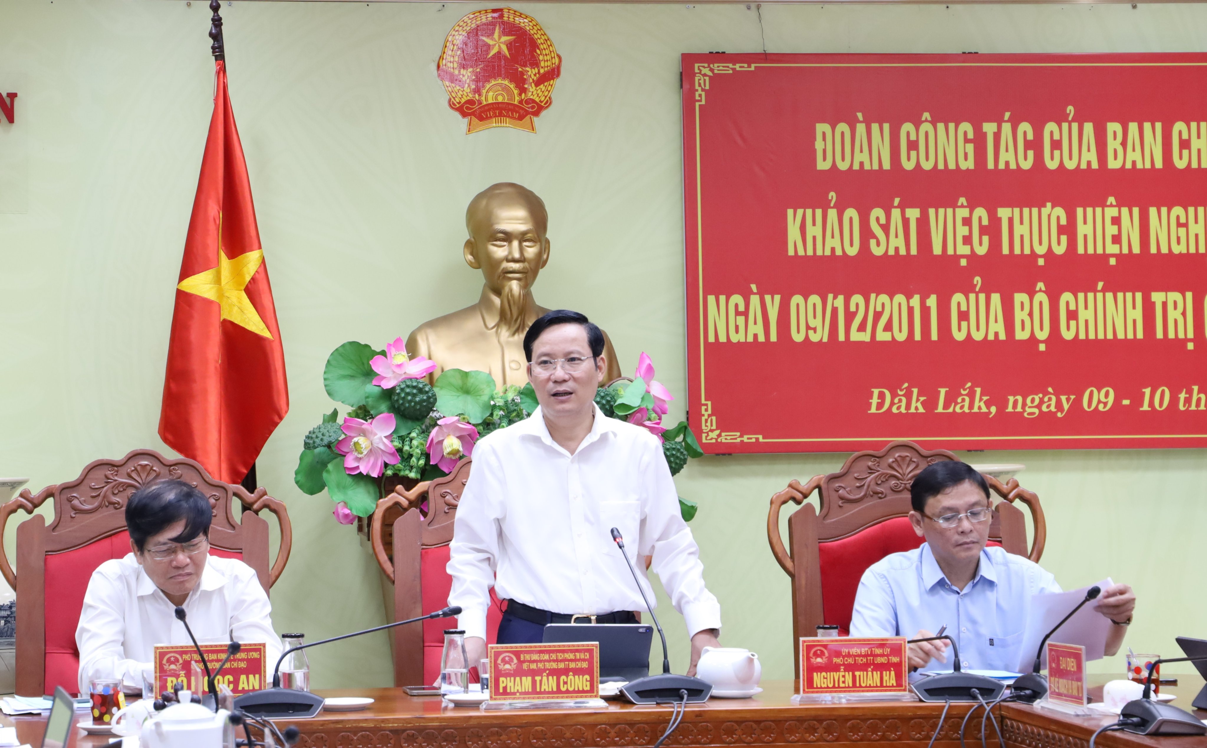 Tham dự buổi làm việc có các đồng chí: Phạm Tấn Công – Bí thư đảng đoàn, Chủ tịch Phòng Thương mại và Công nghiệp Việt Nam, Phó Trưởng ban Thường trực Ban Chỉ đạo; Đỗ Ngọc An – Phó Trưởng Ban Kinh tế Trung ương, Phó Trưởng Ban Chỉ đạo. Tiếp và làm việc với đoàn về phía tỉnh Đắk Lắk có Phó Chủ tịch Thường trực UBND tỉnh Nguyễn Tuấn Hà; lãnh đạo các sở, ngành hữu quan cùng đại diện của hơn 30 doanh nghiệp tiêu biểu trên địa bàn tỉnh Đắk Lắk.