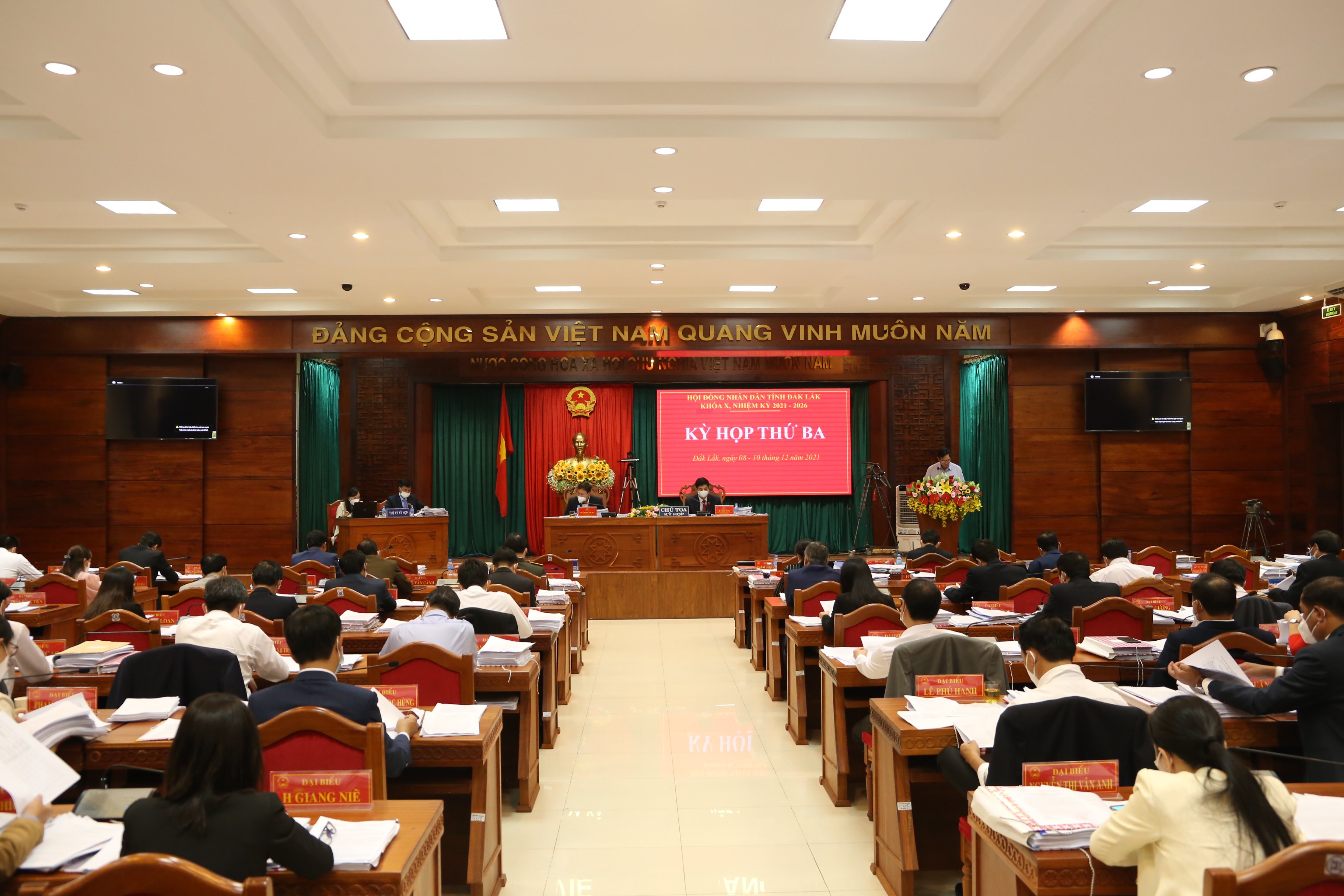 Tiếp tục chương trình Kỳ họp thứ Ba, HĐND tỉnh khóa X, nhiệm kỳ 2021-2026, sáng 8/12, dưới sự điều hành của Ủy viên dự khuyết Trung ương Đảng, Chủ tịch HĐND tỉnh, Trưởng đoàn ĐBQH tỉnh Y Vinh Tơr, Kỳ họp tiến hành xem xét, đánh giá nhiều nội dung quan trọng.